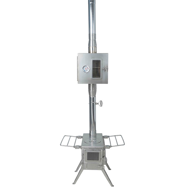 このアダプターを装着すれば、Winnerwell製薪ストーブのSサイズ(53mm)にMサイズ(63mm)のパイプオーブンが装着できます。