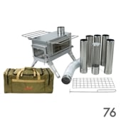 付属品:本体x1、ダンパー付き煙突x1、煙突x4、スパークアレスターx1、火格子x1、炭落とし用スクレーパーx1、ウォータータンク、防火マット、収納ケース、日本語説明書