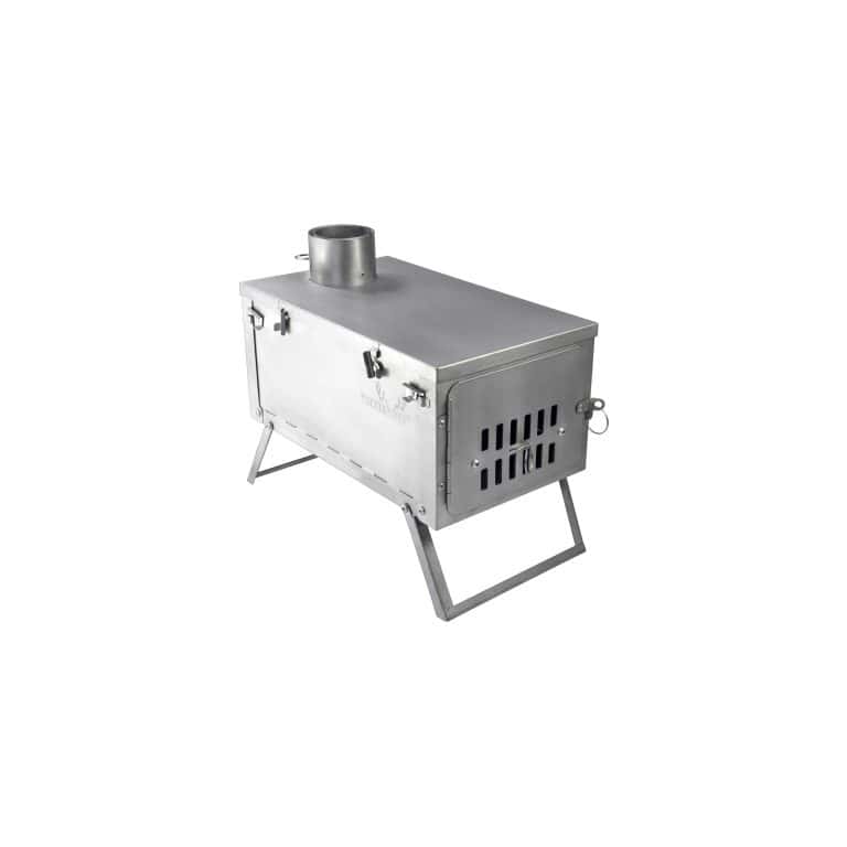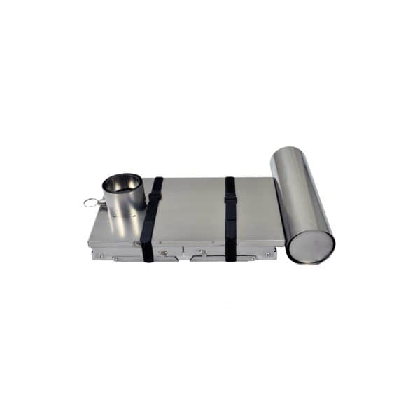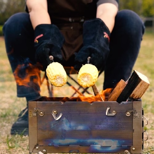 すばやく組み立てられて、コンパクトに収納可能なチタン製フォールディング薪ストーブのMサイズです。